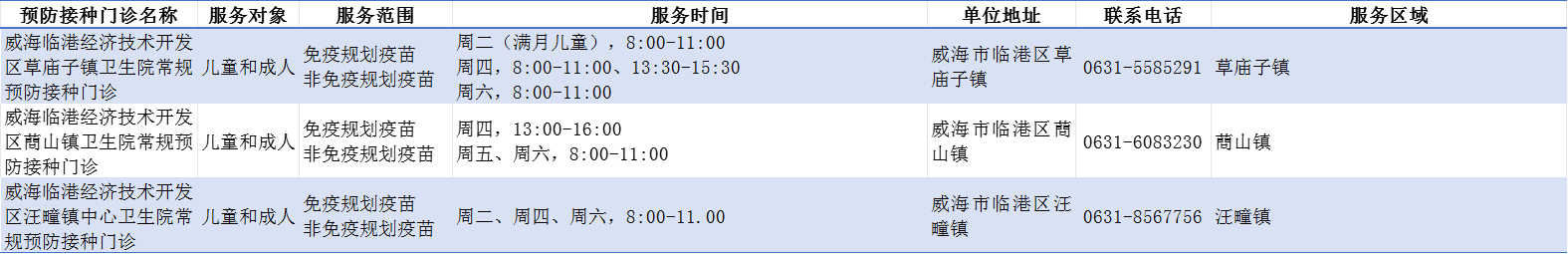 威海市预防接种门诊信息公示如下,如需咨询疫苗相关问题,请致电辖区疾控或辖区预防接种门诊。(注:开诊时间不含国家法定节假日。国家法定节假日具体开诊时间安排,另行公示。)