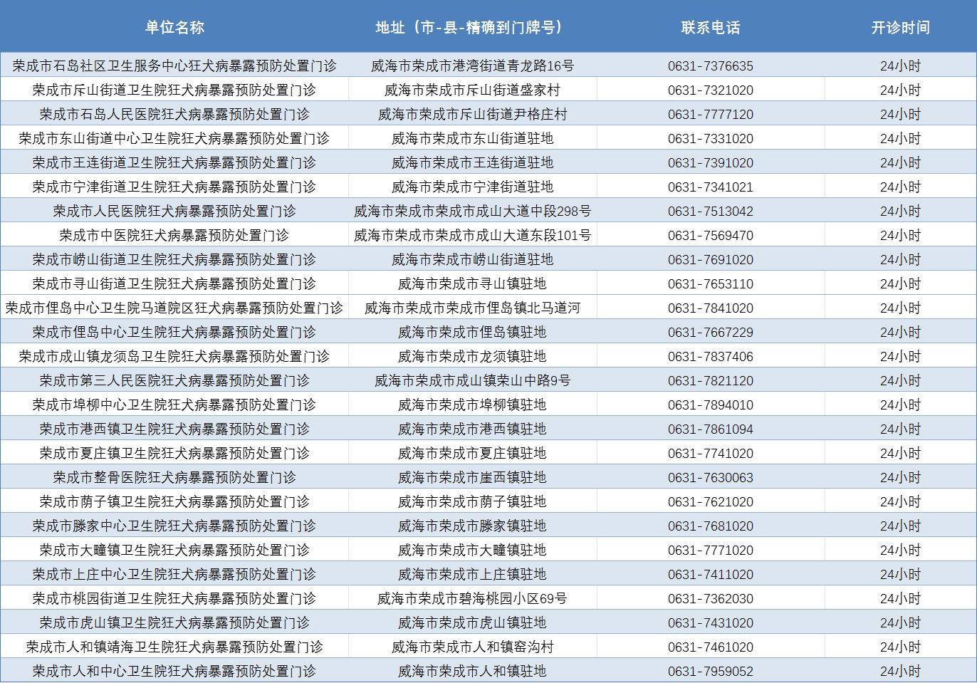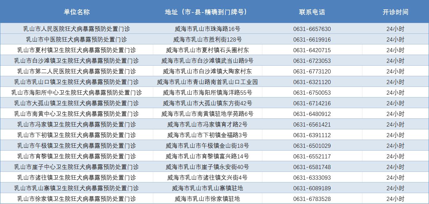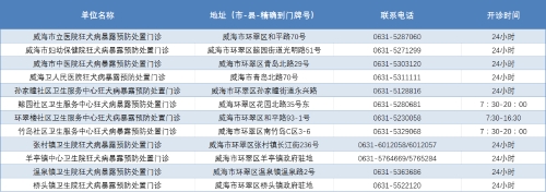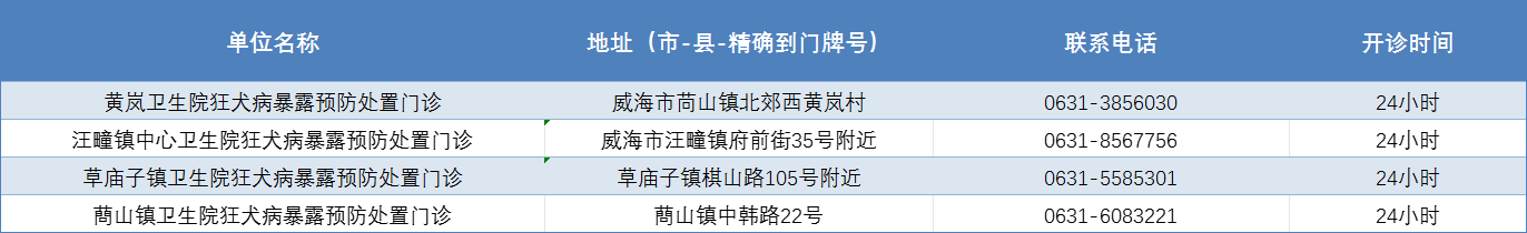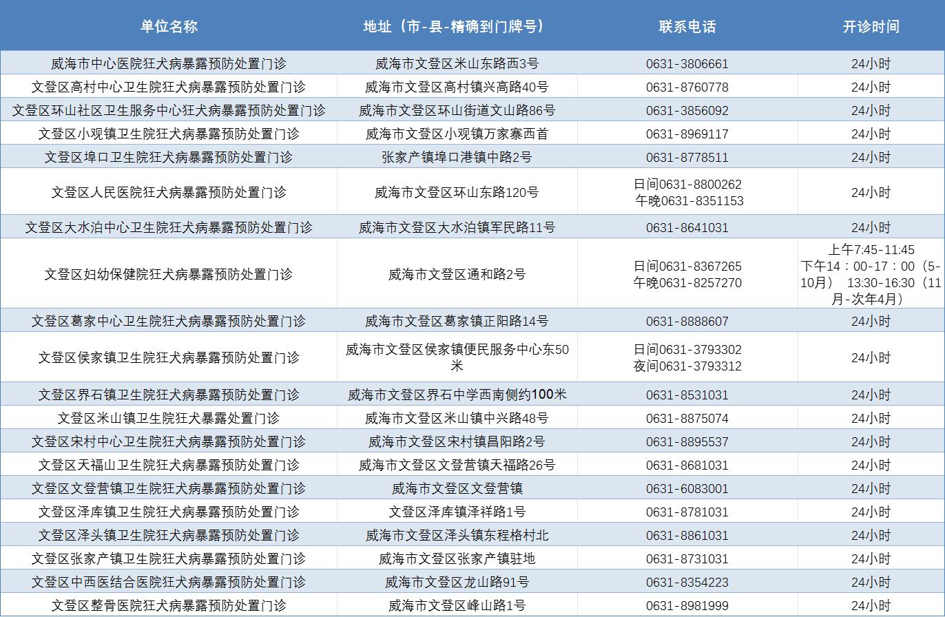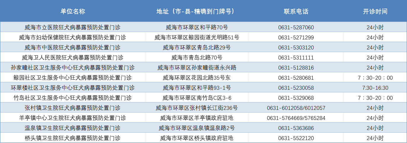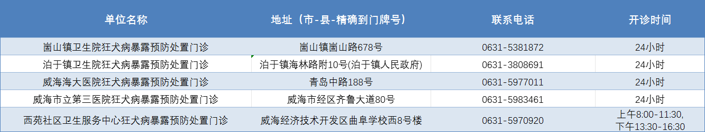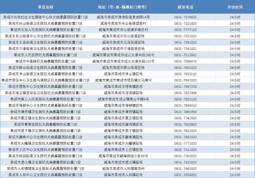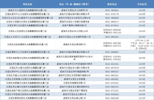 威海市狂犬病暴露预防处置门诊公示