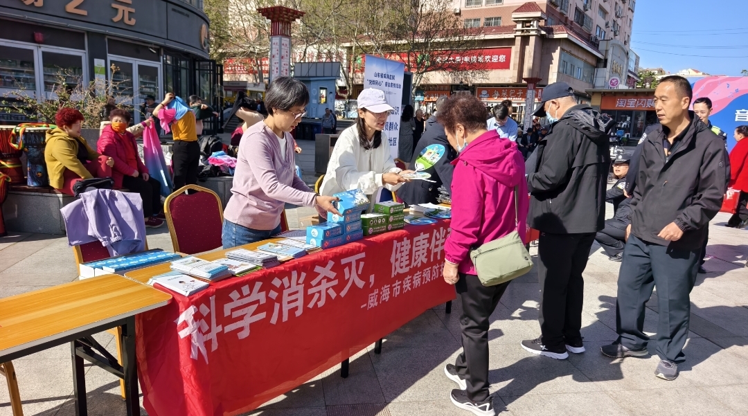 4月22日,正值第38个爱国卫生月期间,威海市疾控中心消毒与病媒生物防制科工作人员走进“音润邻里·共建家园”四联共建音乐集市活动现场,在社区步行街广场设立宣传咨询台,向广大市民普及病媒生物防制知识,发放宣传折页、印有防控知识的小扇子等实用宣传品,并现场解答群众咨询,将专业防疫服务送到居民“家门口”。